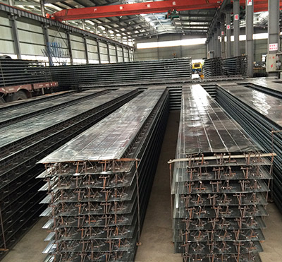 鋼筋調(diào)直:進(jìn)場鋼筋需首先使用調(diào)直機(jī)具進(jìn)行調(diào)直,保證桁架板加工質(zhì)量。鋼筋桁架樓承板組立成型,根據(jù)工程實際要求裁剪每段桁架長度,焊接成型。底模壓型鋼板加工成型:對進(jìn)場鍍鋅鋼板進(jìn)行壓型處理,提高底板整體剛度,邊緣采用折邊處理。件組裝:采用閃光對焊方式進(jìn)行鋼筋桁架與底板的整體焊接組裝。進(jìn)行質(zhì)量檢測,檢驗合格,材料出廠。